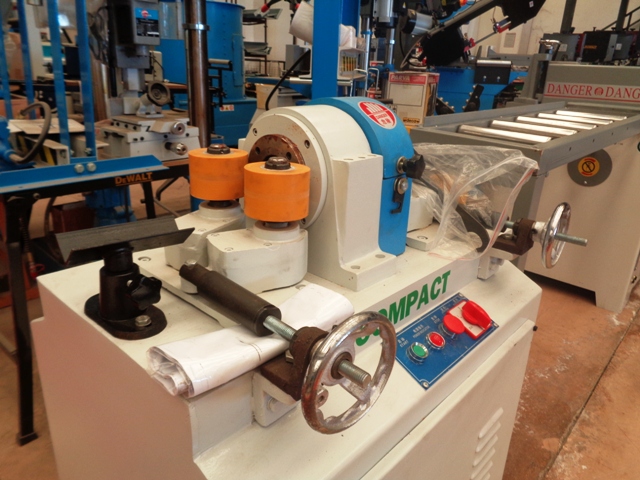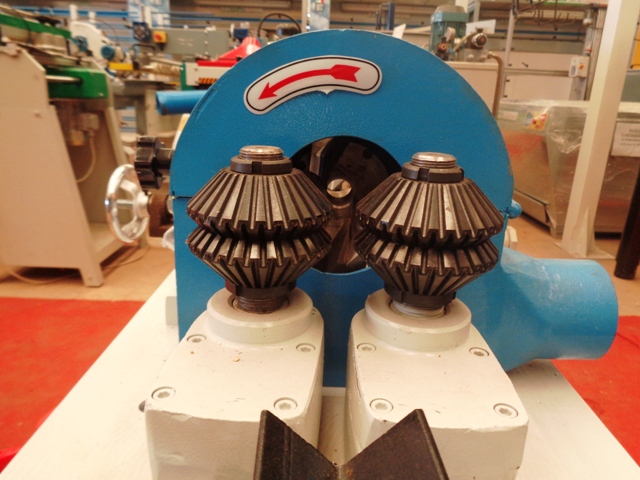 Trafila automatica per la produzione in piccole serie di bastoni tondi diritti in legno.
