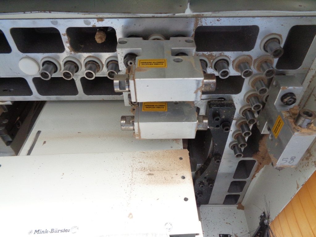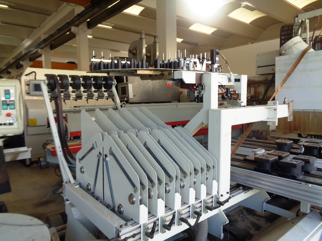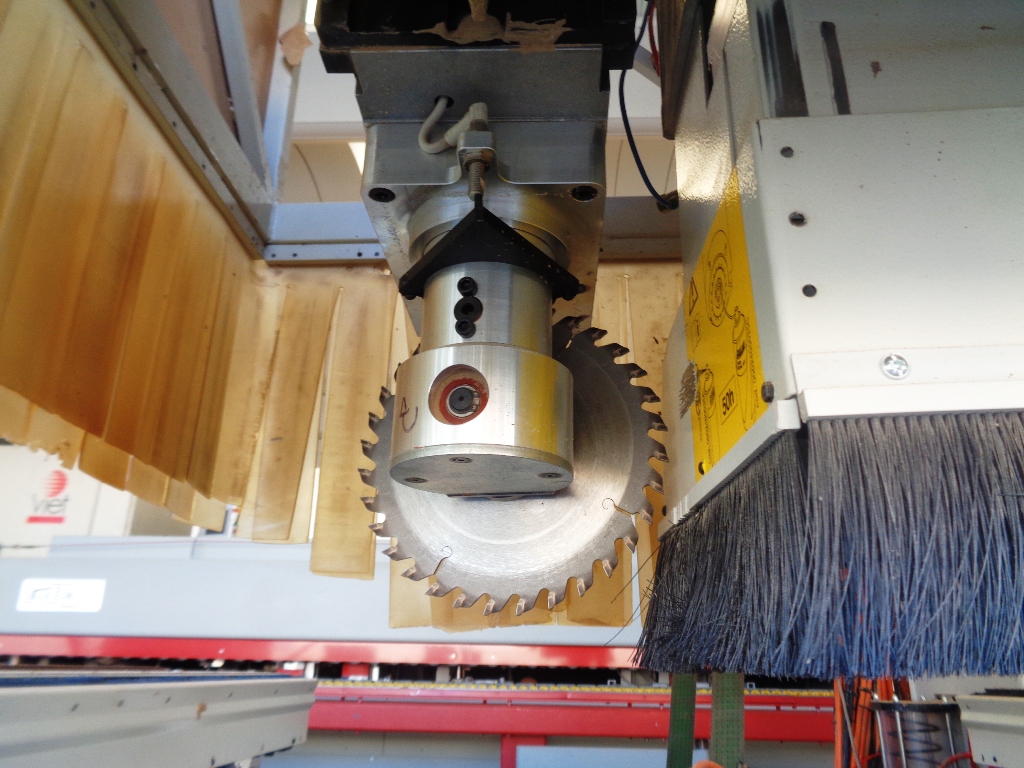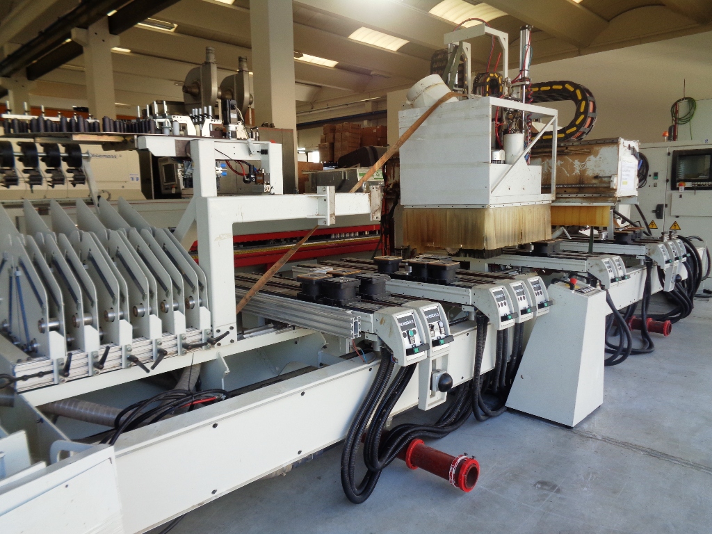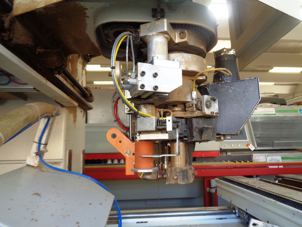 Norme CE, 4 assi, piano di lavoro mm. 4450 x 1530, gruppo pantografo con cambio utensili a 18 posizioni, gruppo a forare 18 punte verticali, 4 + 2 orizzontali, gruppo lama, gruppo bordatura con magazzino bordi, tappeto scarico trucioli, pompa del vuoto 250 m3/h, rimanente composizione gruppi da verificare.