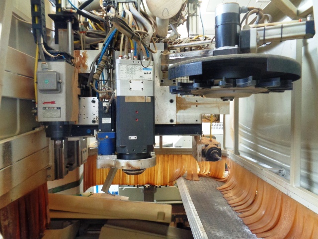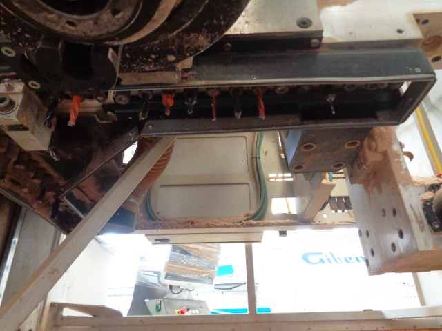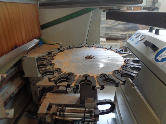 Norme CE, 4 assi, 3 assi fisso, gruppo a forare, rinvio angolare fisso per serrature, piano di lavoro mm 5600 x 1950, 8 barre, 8 cambio utensili a bordo testa, 18 cambio utensili magazzino posteriore, 8 barre, 2 pompe del vuoto, rimanente composizione gruppi da verificare.