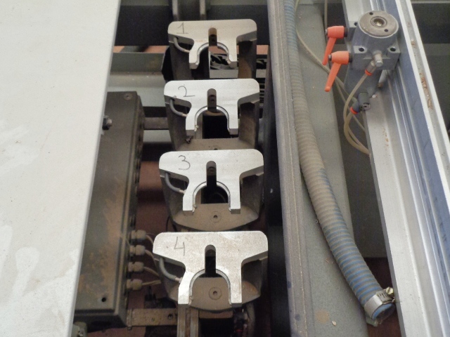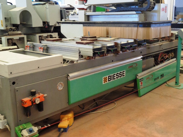 Norme CE, 3 assi, piano di lavoro mm 2830 x 1310, 6 barre, gruppo pantografo con cambio utensili a 5 posizioni a bordo testa, gruppo a forare 4+2 punte verticali, 5 orizzontali, gruppo lama incisioni, pompa del vuoto mc/h 100, rimanente composizione gruppi da verificare.
