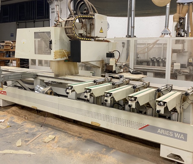 Centri di lavoro CNC per fresatura, foratura, mortasatura e inserimento cerniere.