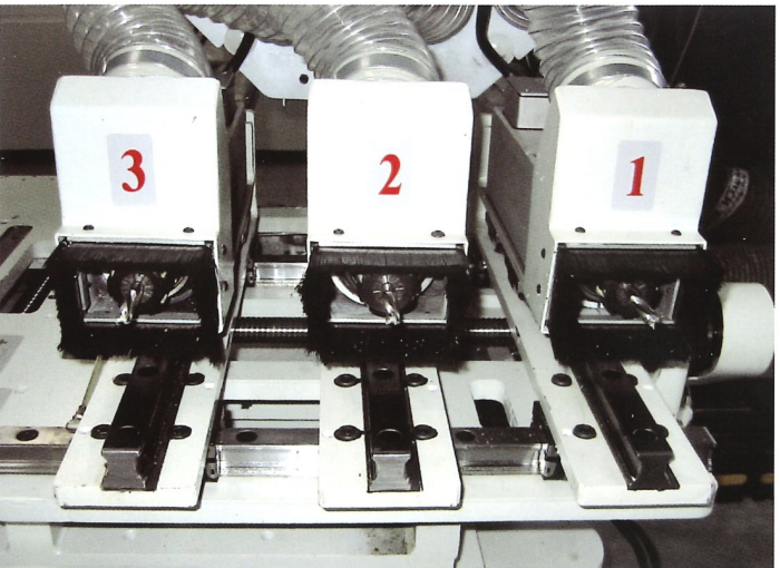 3 mandrini da 2,2 kW (3 CV) a 18000 giri/min, con attacco utensile ER32